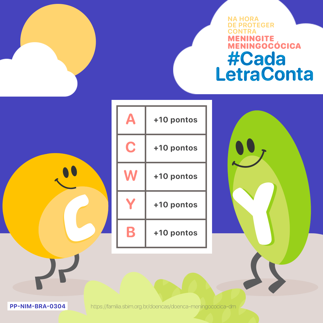 A campanha de meningite #CadaLetraConta integrou o movimento da Pfizer de trazer bem-estar e proteção para o público e proporcionou mais visibilidade sobre o combate à doença. Alcançamos 6,3 milhões de domicílios, conversando com cerca de 8,3 milhões de pessoas.