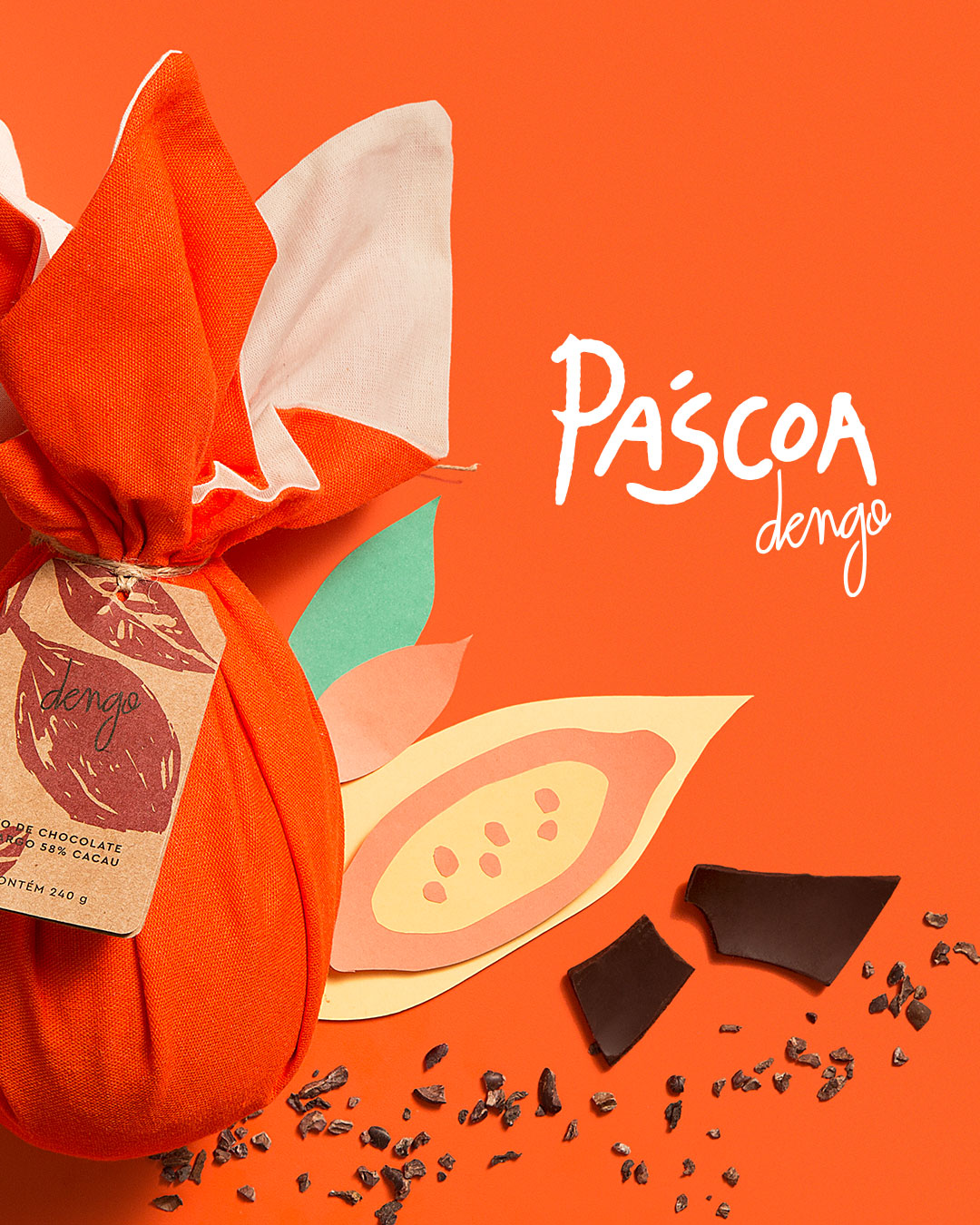 Foi criada uma campanha que tinha como peça principal um filme feito inteiramente em técnica artesanal de stop motion, trazendo uma Páscoa bem colorida e brasileira. Esse mesmo mood seguiu nas fotos dos produtos, usadas na campanha de performance e na Timeline de Instagram, que contaram com recortes de papel e tecido imitando a flora local, representando a origem brasileira da Dengo, sua preocupação com sustentabilidade e sua produção bean to bar. Foi desenvolvido também o filtro de Instagram Stories 'Roleta de Significados', que promovia a ressignificação da Páscoa, relembrando aos consumidores seu caráter celebratório, de união e renovação, muito além do chocolate.