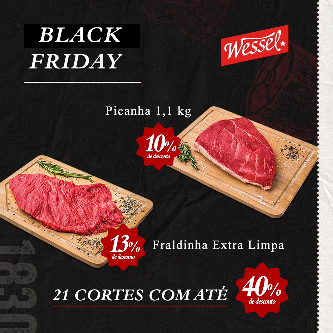 Uma campanha dividida em fases de teaser, Esquenta e Black Friday. Durante o mês foram trabalhados grupos de ofertas com apelos diferentes, mas que reforçavam todo o portfólio da Wessel. Os criativos também acompanharam a estratégia de divulgação da marca, trabalhando appetite appeal junto com os elementos que remetem ao legado, à qualidade da Wessel.