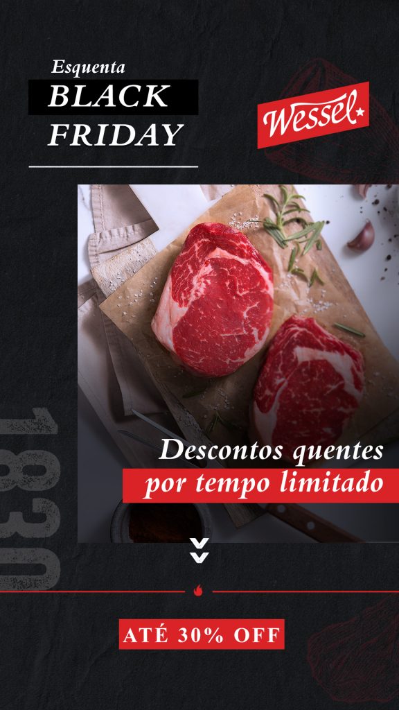 Uma campanha dividida em fases de teaser, Esquenta e Black Friday. Durante o mês foram trabalhados grupos de ofertas com apelos diferentes, mas que reforçavam todo o portfólio da Wessel. Os criativos também acompanharam a estratégia de divulgação da marca, trabalhando appetite appeal junto com os elementos que remetem ao legado, à qualidade da Wessel.
